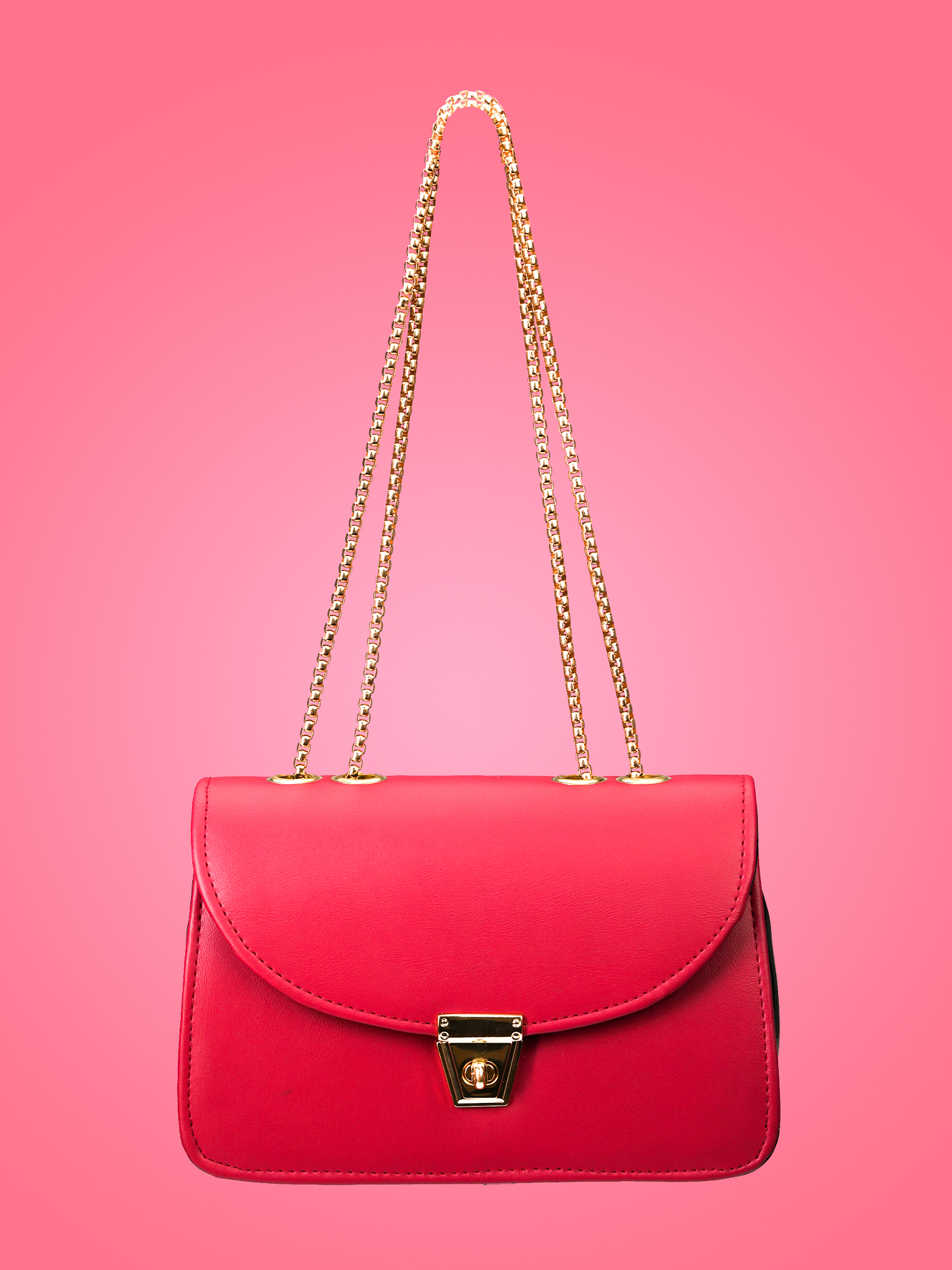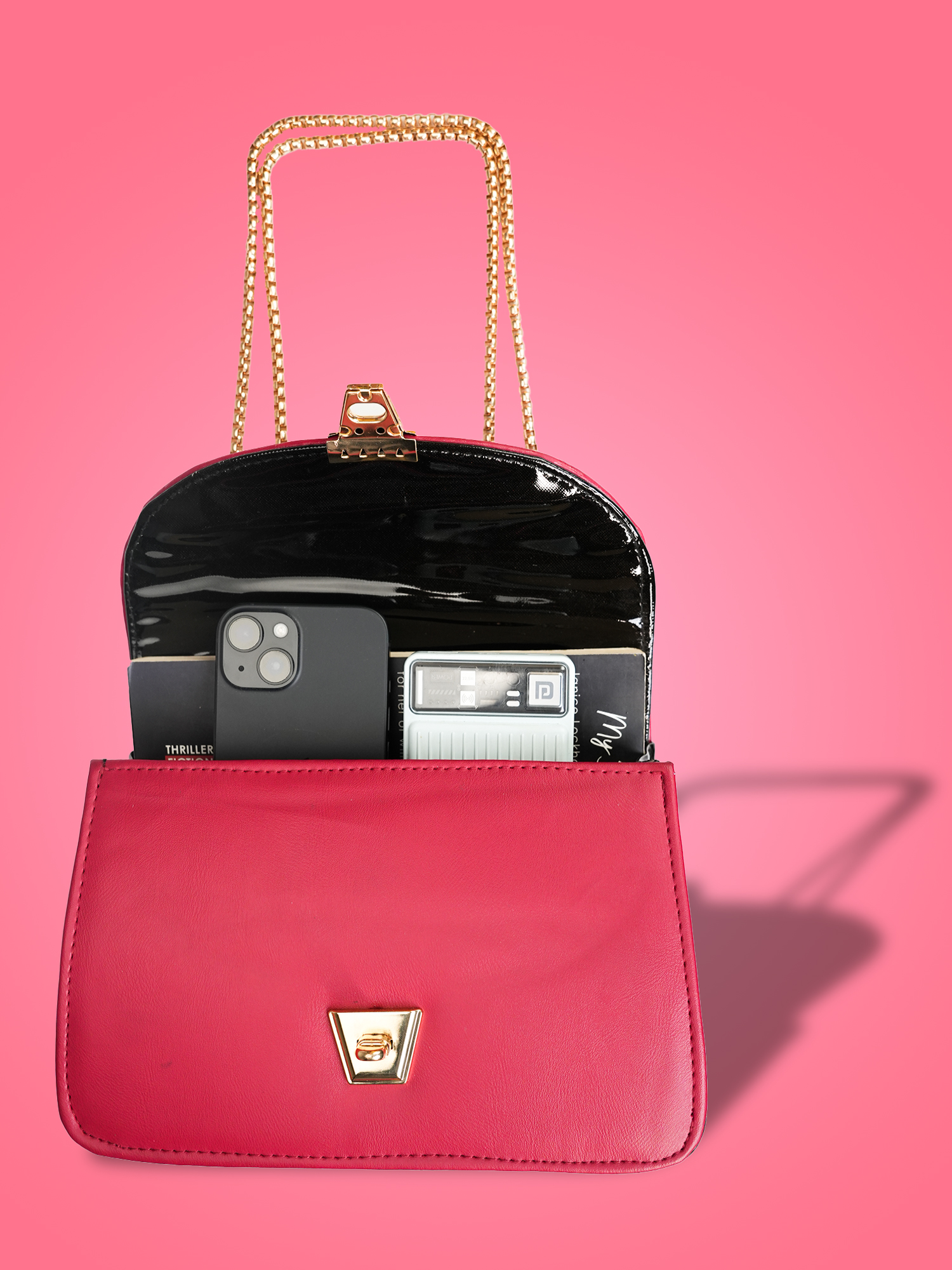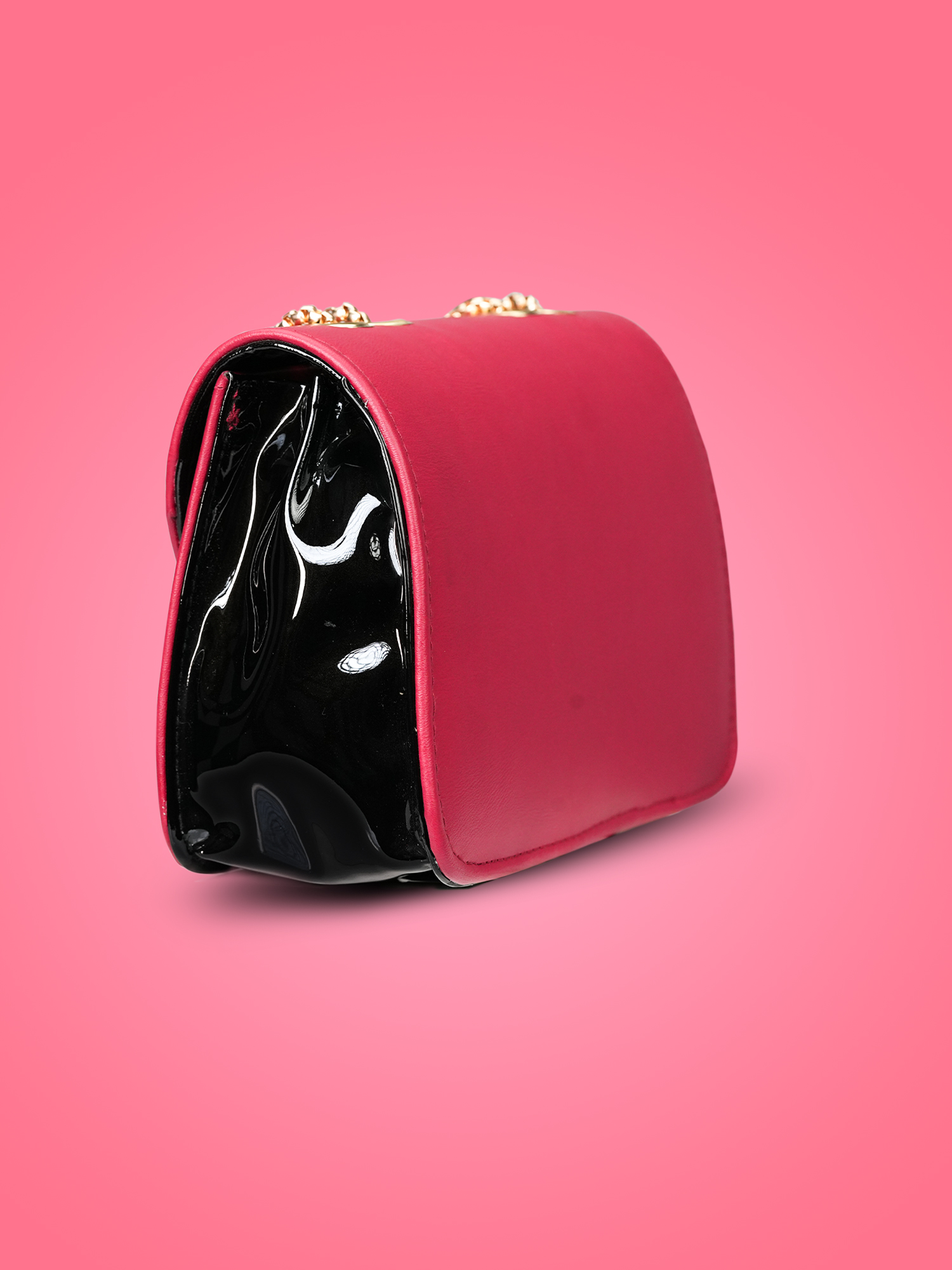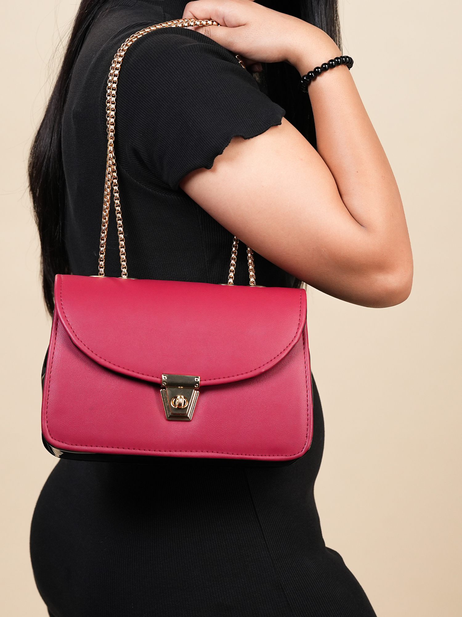 Women’s Sling Bag with Gold Chain Strap, Stylish Sling Bag for Women 22 cm x 15 cm (Rose Red)
